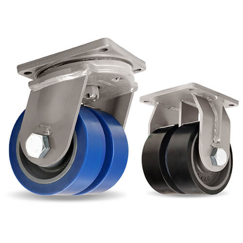 由电焊钢轮毂制成,带有涂有黑色或蓝色防锈漆的高熔透“mig”系统。Vulkotech涂层的硬度在80到97sha之间,抗撕裂性高。可用于滚珠轴承或通孔和键槽。工作温度从-20°c到+80°c。