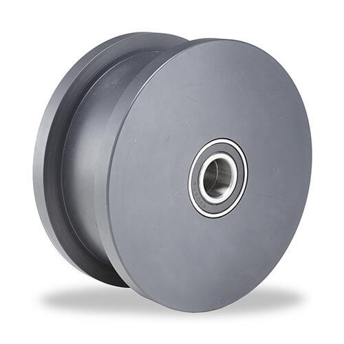 带侧导边的特殊钢轮。良好的平滑度,低推力。中性版本,带有滚珠轴承或设计的孔。