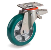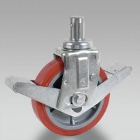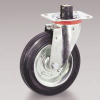 所有车轮通常需要使用安装在小车上的支架;具有集成在小车中的轴的车轮是一个例外。旋转支架:随着移动方向的改变,在其自身的垂直轴上旋转;它可以与顶板一起旋转,与螺栓孔一起旋转,与阀杆一起旋转。它可以安装一把锁。固定支架:不能旋转;它的任务是沿着一条路线维护车轮。